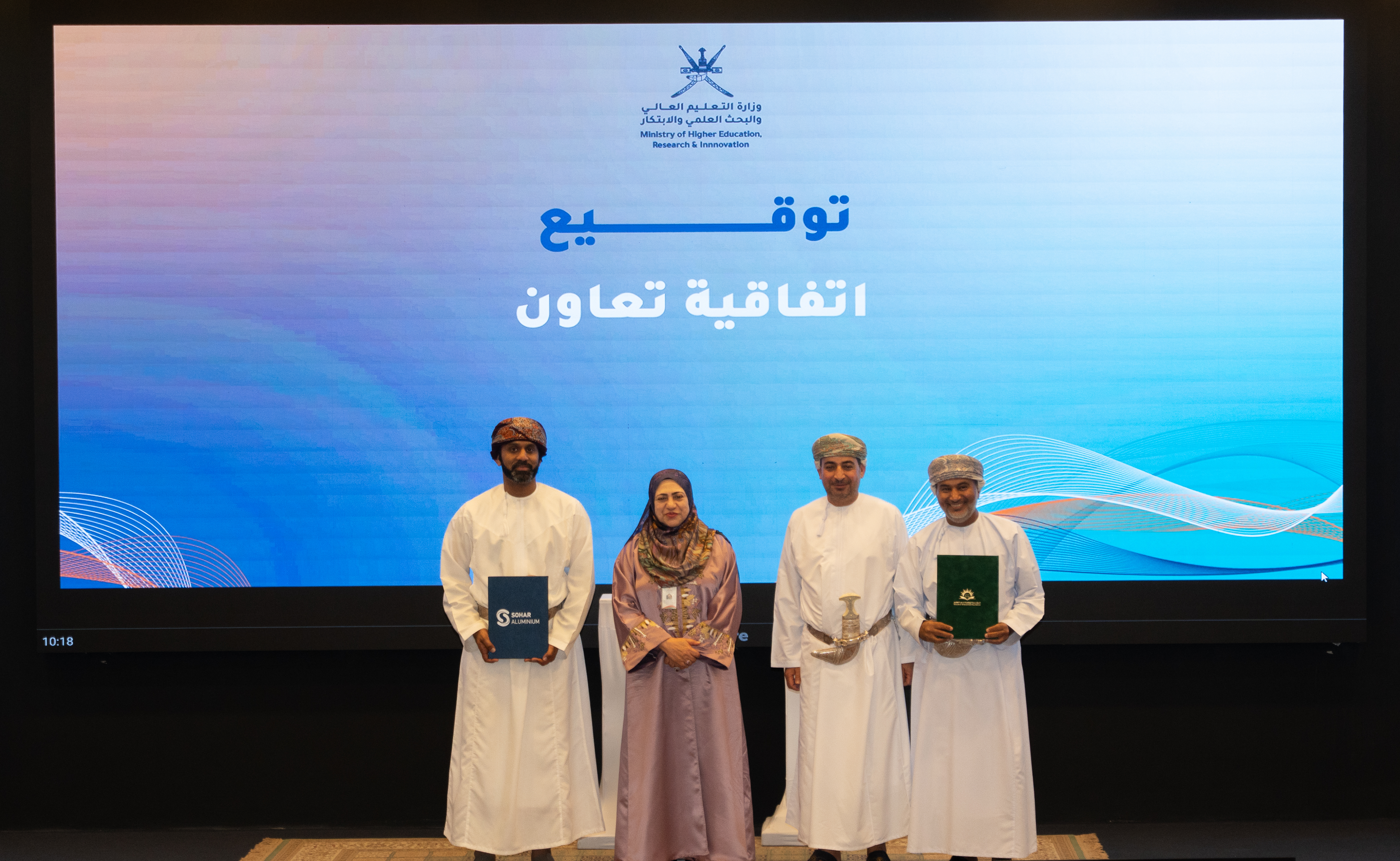 The agreement was signed in the presence of Her Excellency Prof. Rahma bint Ibrahim Al Mahrouqi, Minister of Higher Education, Research and Innovation. The agreement was signed by Jameel Mohammed Shakeel, Corporate Communications and Social Responsibility Manager at Sohar Aluminium and Eng. Mahmood bin Khalfan Al Hadidi, CEO of Siraj Education Endowment Foundation.